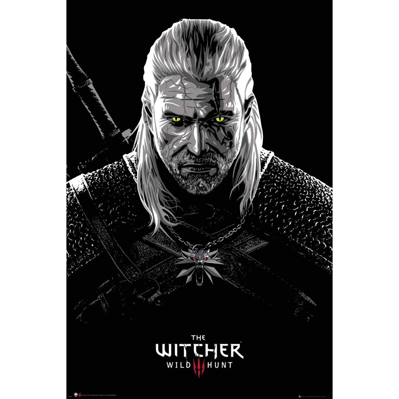 Nemůžete se na sebe ráno v koupelně ani podívat? Plakát Zaklínače Geralta místo zrcadla zvedne Vaše sebevědomí o 100%. Skvělý dárek pro hráče a fanoušky fantasy videohry The Witcher 3: Wild Hunt – Zaklínač 3: Divoký hon! ozdobí také váš pokoj, pracovnu nebo hernu.